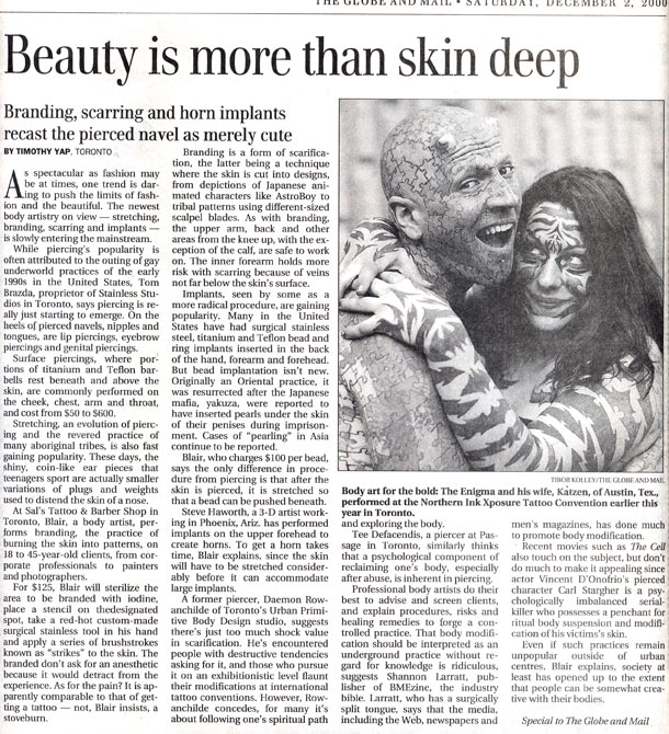 than skin deep - The Globe and Mail, Dec 2, 2000